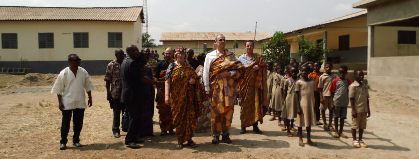 Für den 21. Januar hat sich der Botschafter Herr Sander für einen Besuch angesagt. Das ganze Dorf ist in Aufruhr! Noch niemals vorher war eine so hochgestellte Persönlichkeit im Dorf gewesen. Es werden Reden gehalten, getanzt und natürlich gegessen. Massa unsere Köchin hat sich richtig viel Mühe gegeben: Fufu gibt es, das höchste Feiertagsgericht, zubereitet mit Fleisch von Agutis (= Nagetiergattung).